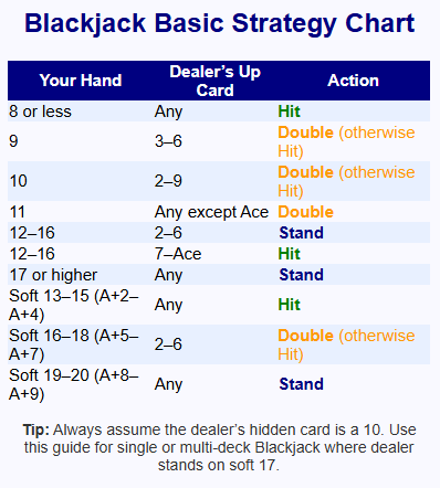 10) Stand on soft 19 or 20 (Ace + 8 or Ace + 9).